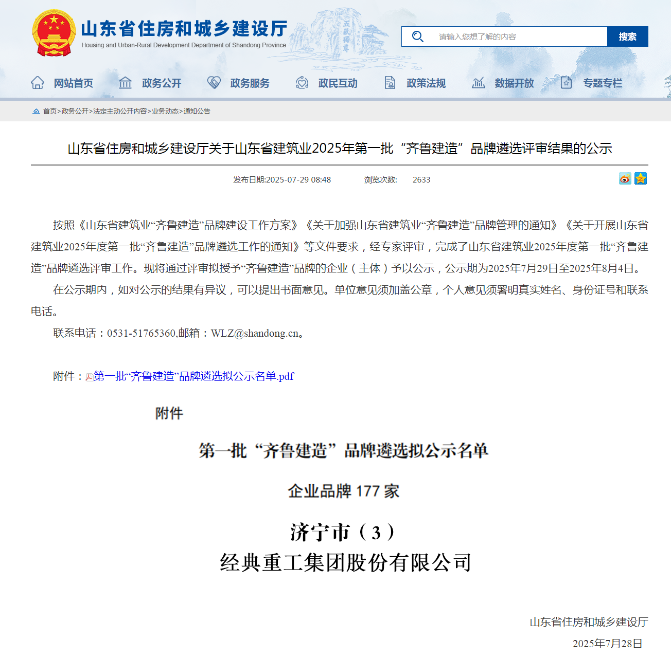 榮耀入選!經(jīng)典集團榮登2025年第一批“齊魯建造”品牌榜